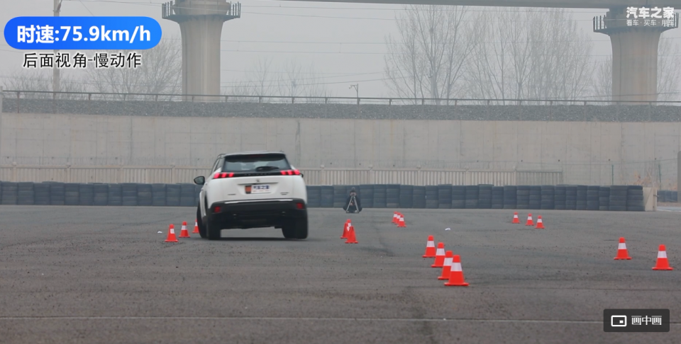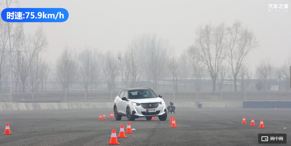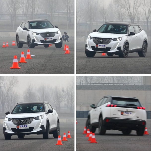在汽车之家测试中,标致2008在紧急规避时车身姿态保持的非常好。在上图中,无论是第一次入弯,还是第二次入弯,以及完成规避后,第三次回弯,整车侧倾角度不大。另外,在视频中,标致2008在完成整个麋鹿测试时,整一套入弯出弯的动作,非常流畅,能看的出这个小车应付起来很轻松。