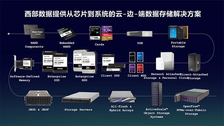 作为全球存储解决方案提供商的头部企业,西部数据不仅是一家同时拥有 HDD 和闪存开发技术的公司,同时提供从芯片到系统的云、边、端数据存储解决方案,几乎可以覆盖消费产品、IoT、数据中心在内的全场景。