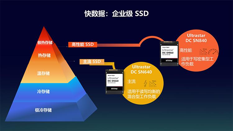 针对极热存储、热存储,西部数据的固态硬盘产品组合为客户提供更优更广泛选择的存储解决方案,除了用于主流工作负载的 SN640,近期还发布了新款 Ultrastar DC SN840 NVMe 固态硬盘,具有更佳的计算存储和缓存性能,帮助用户有效应对数据基础架构挑战。