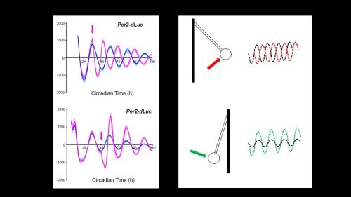 理解也是比较简单的,其实仍然是借助我们前面说到的,生物钟就是一个钟摆,或者说是一个荡秋千,我们给药的这个方式就是给它一个推力,当钟摆在最高点的时候,你一推 相位就改变了,但是如果它是在另外一边,你背后给它推一下,秋千就荡得更高了,振幅就提高了。