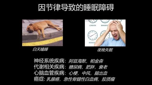据统计65岁以上的老年人,有25%的人是会弱化他的生物钟,而这些就会导致一系列的后果。因为生物钟不好,然后睡眠质量不好,一直长期处于亚健康状态,就会导致各式各样的疾病,包括神经系统的疾病、代谢类的疾病、心脑血管疾病、甚至还有癌症;