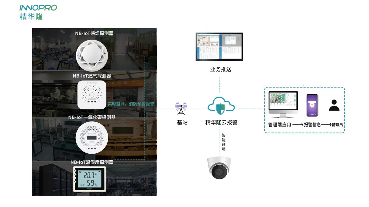 对于物流仓库火灾防控,INNOPRO精华隆5G NB-IoT智慧消防解决方案,以防为主,消为辅,建立智慧消防物联网平台,通过远程实时监测消防终端设备及周边环境状态,做到消防安全提前预警告警,消除安全隐患,把火灾消灭在萌芽状态,为生命保驾护航。