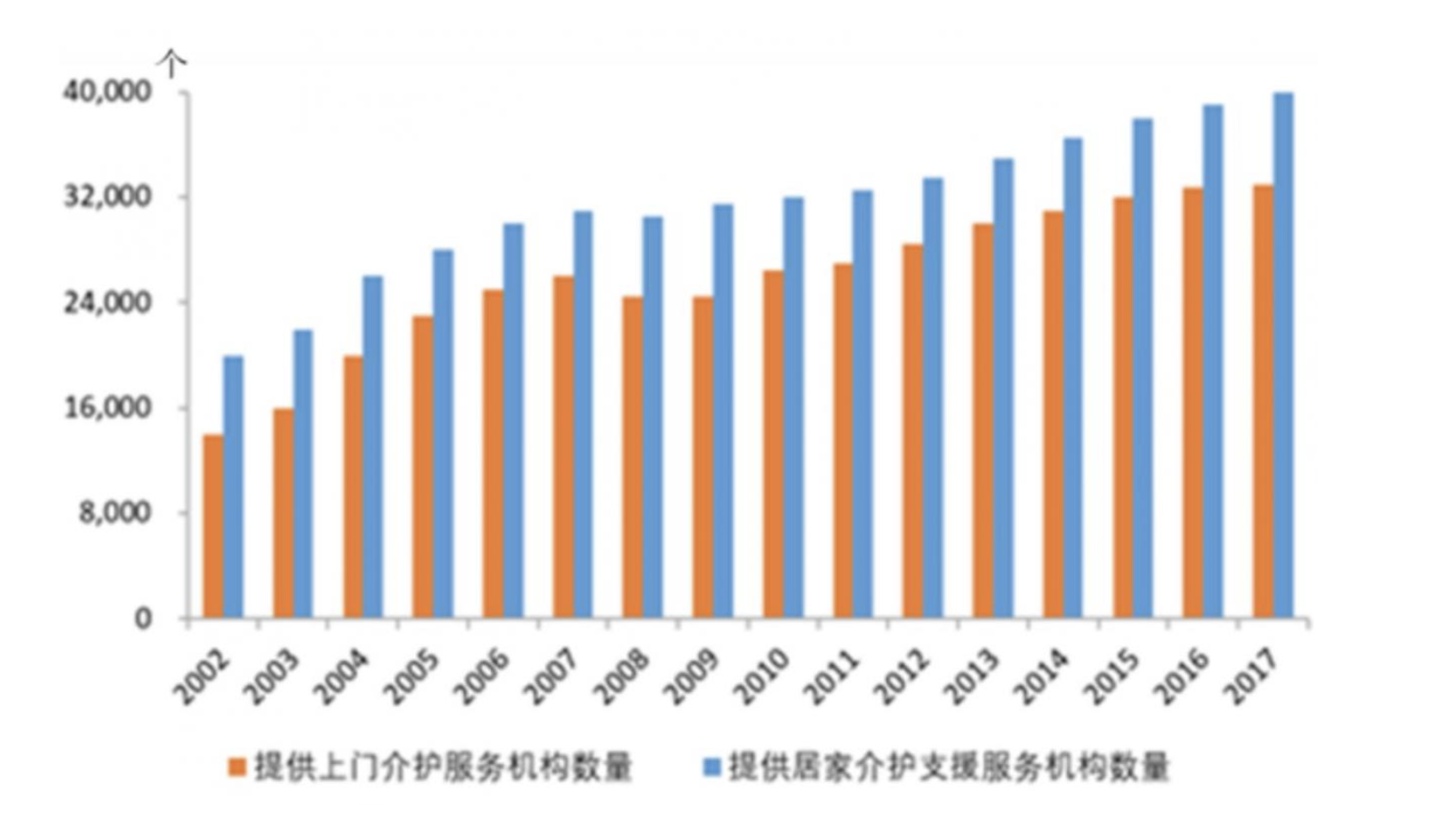 根据厚生劳动省数据,提供上门介护服务和居家介护支援服务机构数量从 2002 年的1.4 万家/2 万家迅速攀升至 2017 年的 3.3 万/4 万家。介护产业蓬勃发展,并正向周边国家进行“介护出口”日本养老上市企业营业额排名前 3 强分别为日医学馆(Nichiigakkan )、损保控股(Sompo Holdings)和贝内斯控股(Benesse Holdings)。其中,日医学馆销售额连续十年创新高,2018 财年的销售规模达到 2837 亿日元,已经成为亚洲最大的养老公司。