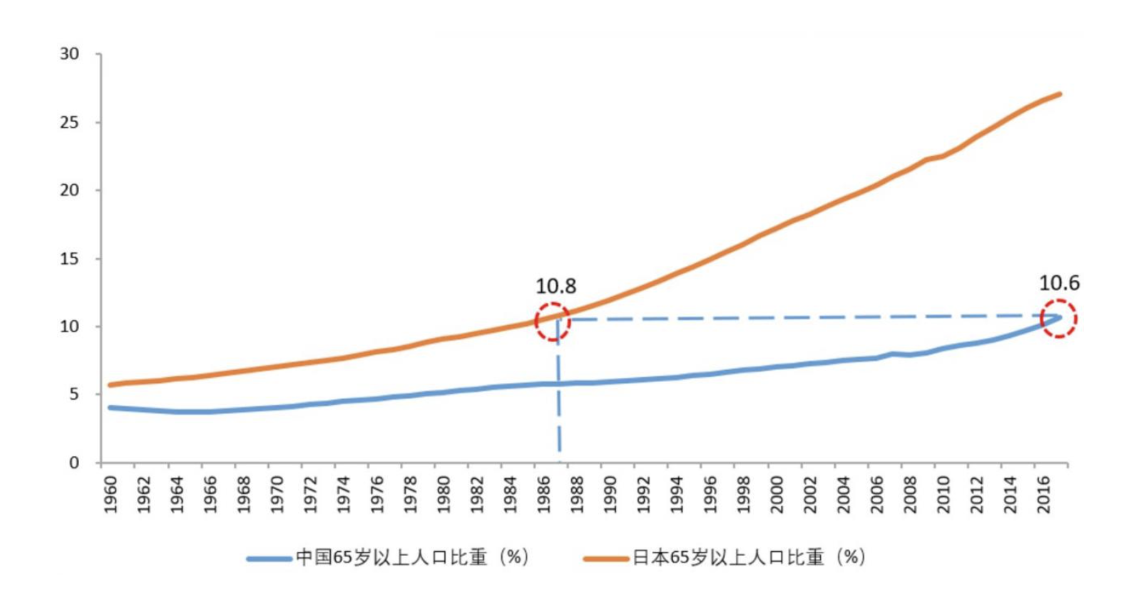 老龄化程度位居全球第一的日本,老龄化进程大约比中国提前 30 年。我们可以借鉴日本应对老龄化的措施,对我国应对老龄化进程提供一些经验和启示。