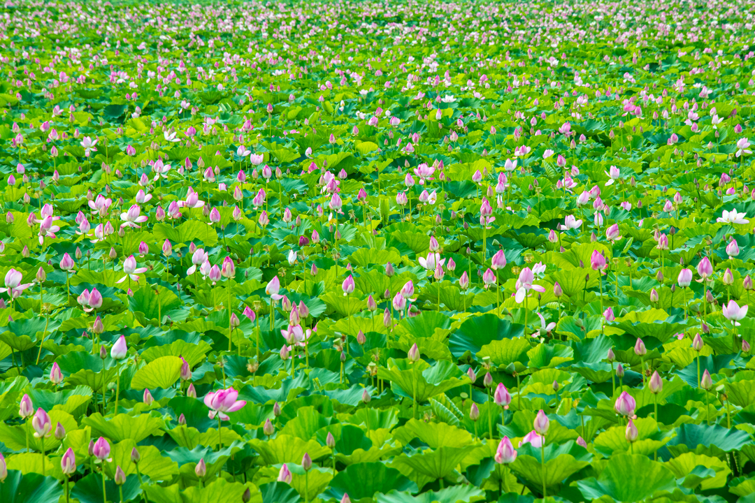 盛夏时节,沈阳市沈北新区辽河七星湖景区内3000亩荷花花开正艳,成为市民休闲避暑的好去处。游客在观荷、赏花,欣赏水天一色的优美风光时,感受“接天莲叶无穷碧,映日荷花别样红”的生态之美。