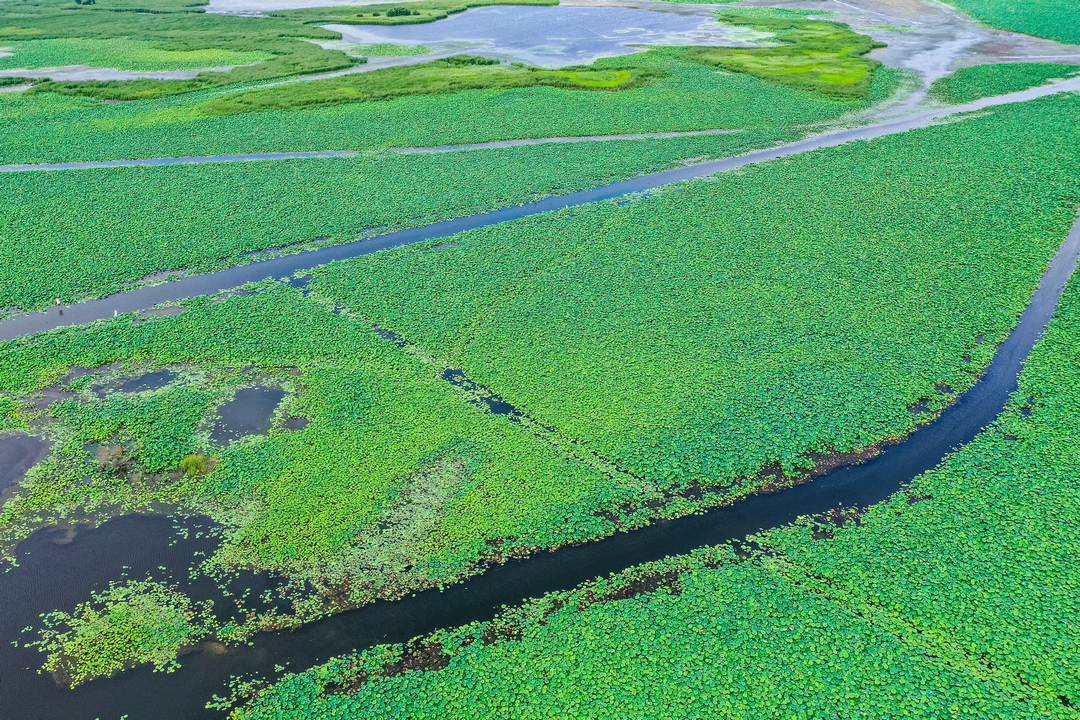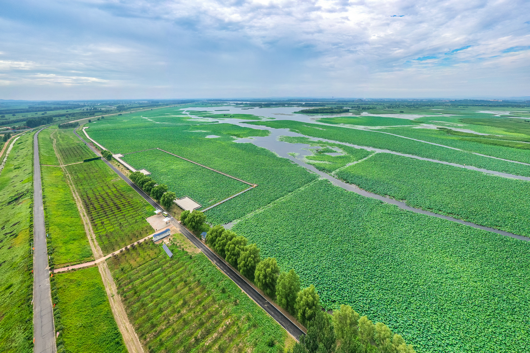 辽河七星湖景区内河水浩淼,各种植物枝繁叶茂,生机无限。栽植有树木19.28万株、芦苇2600亩、蒲草5500亩、荷花3000亩、荇菜800亩,形成了 “水库 +湿地”的独特景观。