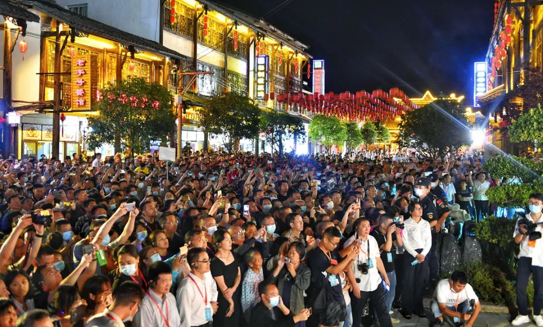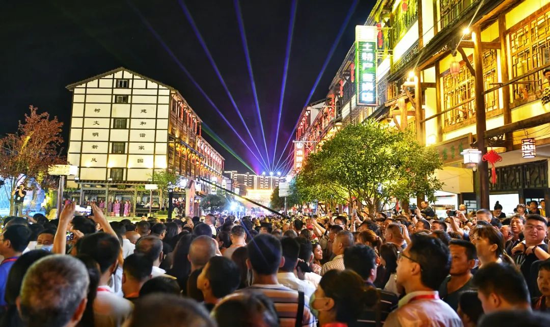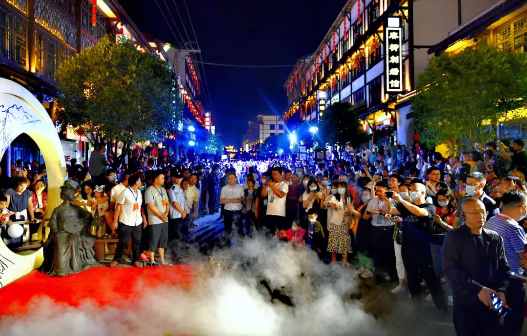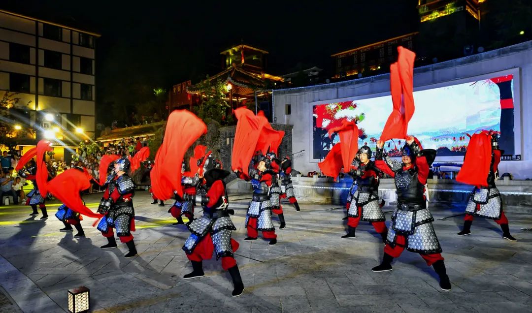 在汉王广场,舞蹈《天工开石》、川剧表演、豫剧选段《陈驸马休要性情急》……一场场精彩的节目表演轮番上阵,赢得游客啧啧称赞。“你看狮子舞表演太厉害了!”“傩戏表演令人震撼,让我深切感受到了曾家山深厚的民俗文化……”