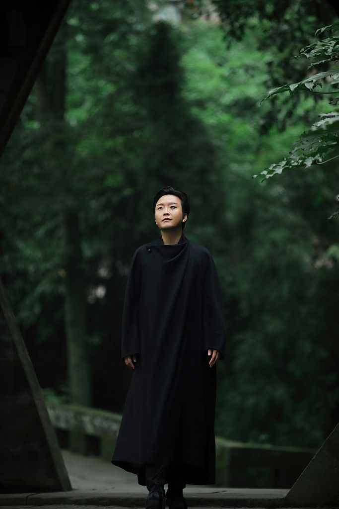 近日李玉刚一组禅意大片曝光 ,身穿一席黑色长袍的李玉刚行走于石像林立的山间,画面唯美静谧,意境深远。