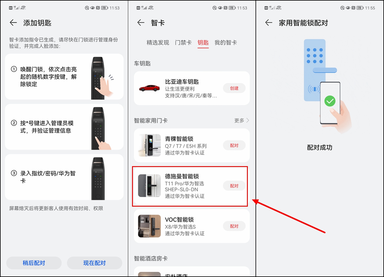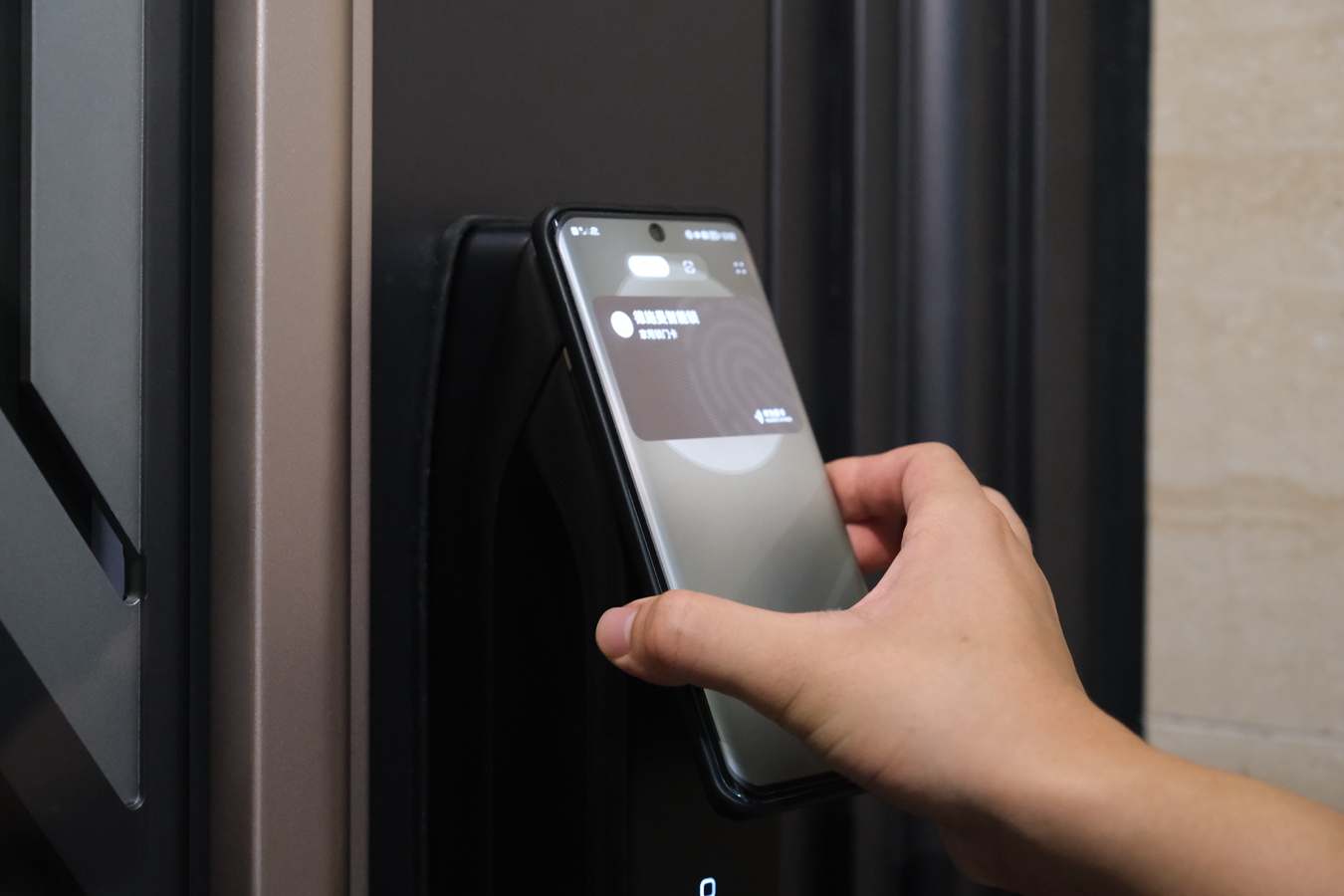 只要成功地给手机添加了华为智卡,手机里的NFC功能也开启,那么手机在处于熄灭状态的时候,只要轻轻一碰智能门锁的NFC感应区域,那么手机屏幕会出现华为智卡界面,门也就很快被打开了。这种方式比输入6位密码来得方便,而当指纹磨损或者沾水不好识别的时候,华为智卡也能派上用场。