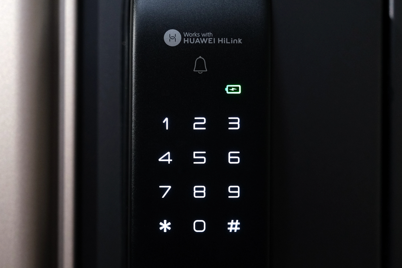 华为智选德施曼智能门锁采用了12位全触控密码面板,轻轻触控面板即可点亮各个按键,因为是白色的背光灯,所以在黑色锁具面板的衬托下显得格外醒目,无论是白天黑夜都可以看得很清楚。这些数字按键点触灵敏,反应迅速。此外,它还设立了门铃键,让门锁也能充当门铃使用。