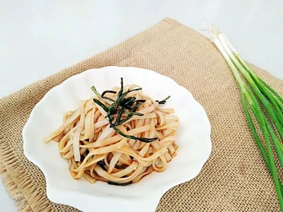 4)大容器中放入面条和双丝,用老抽3小匙拌匀撒上点熟芝麻即可。不能用生抽哦,太咸也没有甜味就不是我们这款凉面的特色了。