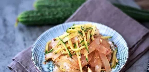 3)加入芝麻酱、盐、糖、老陈醋、生抽、黄瓜丝,搅拌均匀即可。