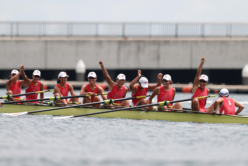 2021年7月30日,日本,2020东京奥运会赛艇女子八人单桨有舵手决赛,中国队摘铜。