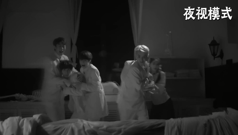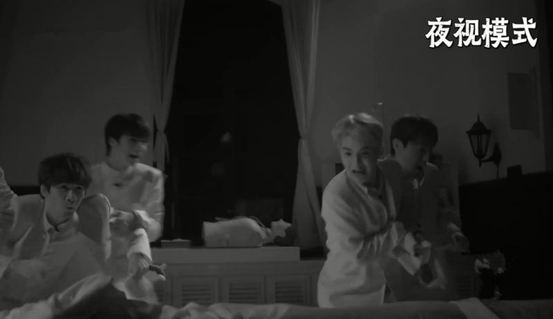 只要灯一黑,邓伦时刻开启闭眼玩家模式,全程闭眼、埋头,紧紧抓着小贾躲在队伍中间寻找安全感。