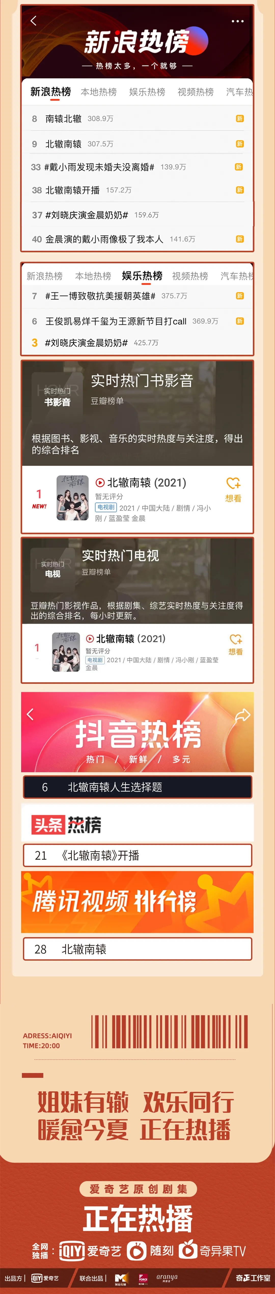 《北辙南辕》剧集于7月11日播出后,各项热度指数不断飙升,在现下为数不多表现都市女性生活及情感群像影视作品中,迎来了超高的关注度与讨论度!追剧同时,也敬请关注乐维素质偶像们的精彩表现!