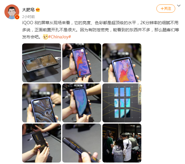 而从数码博主@大肥皂 发布的现场真机上手体验来看,iQOO 8确实在亮度和色彩方面达到了顶级水准,而且画面显示效果也非常细腻,这也再次证实了iQOO 8在屏幕方面会有出色表现。