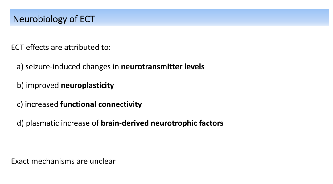 迄今为止,学界对改良电休克治疗起效的具体原理仍在探讨中。