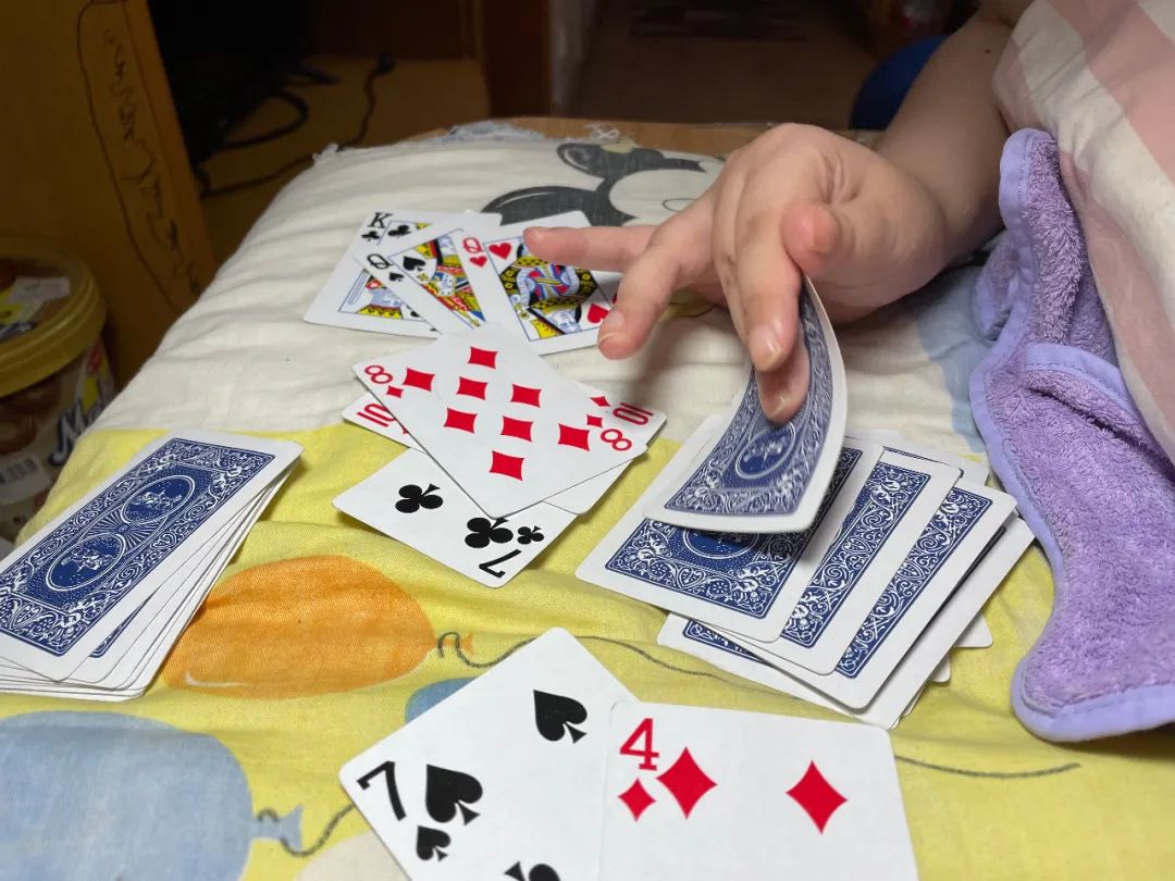 直立的两个小时里,孩子会给王磊拉一曲欢乐颂,还会围在站立桌旁,陪她打扑克。“这点真是遗传,我也从小打牌、打麻将。”王磊说着话,还不忘用指头确认手上的牌,她让孩子发牌,还要帮她排好,而孩子虽然总是输,但从不耍赖。