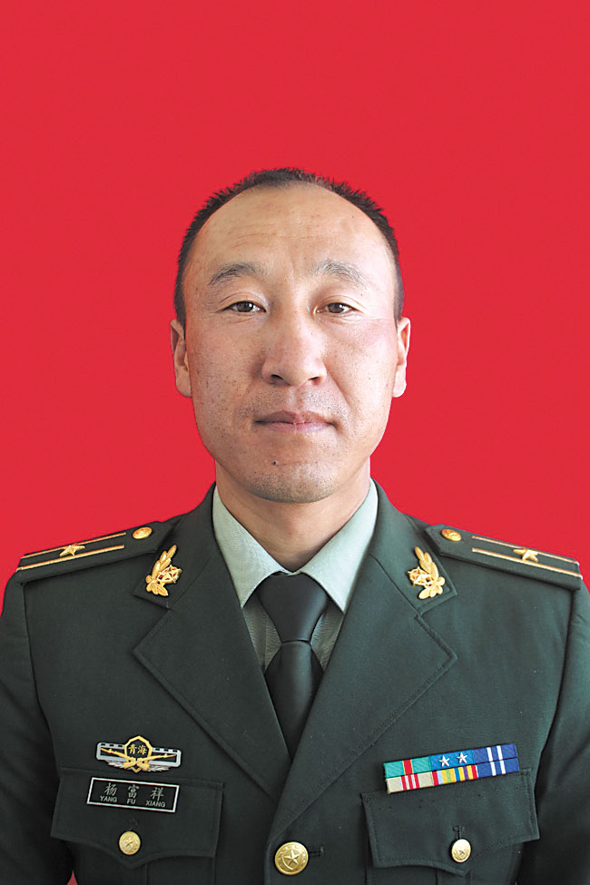 杨富祥,武警部队青海省总队执勤支队某大队大队长。男,汉族,1982年7月出生,2002年12月入伍,2003年10月入党。该同志扎根平均海拔4700多米的昆仑山腹地,15年奋斗在青藏铁路守护线上,累计巡逻3万余公里,带领官兵坚守岗位、赤诚奉献,排除山体滑坡、铁路落石等险情100余起,守护15万余趟列车安全通行。被评为中国武警十大忠诚卫士,荣立一等功1次、二等功1次、三等功3次,所带中队被武警部队评为基层建设标兵中队。