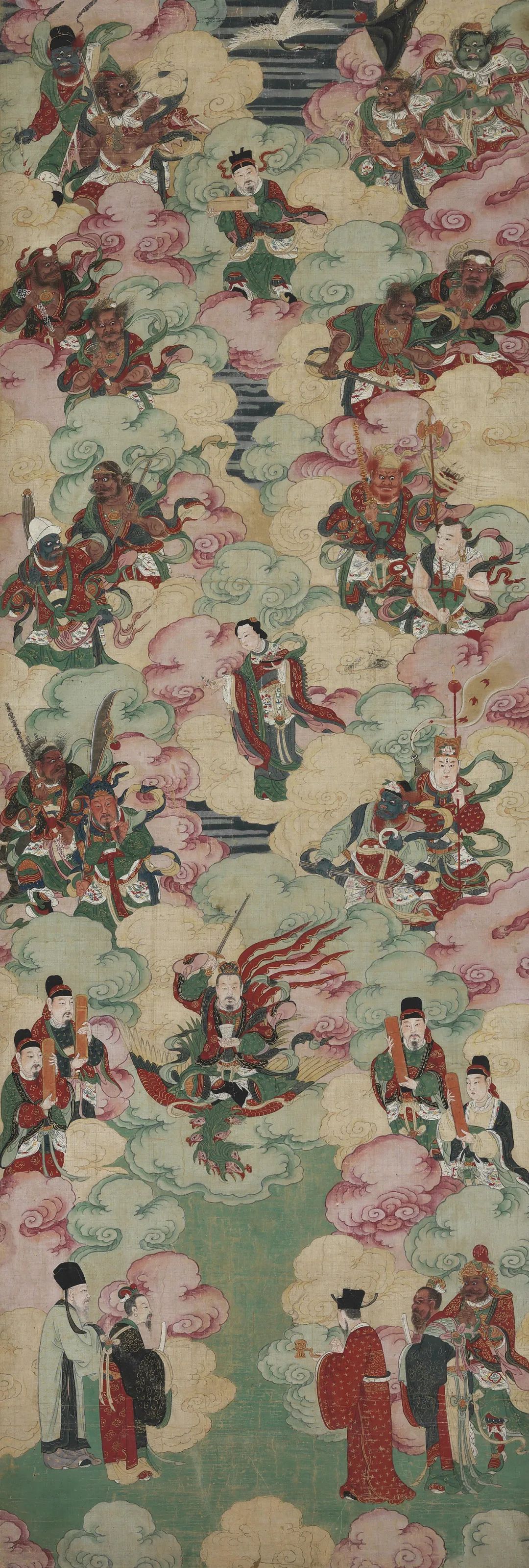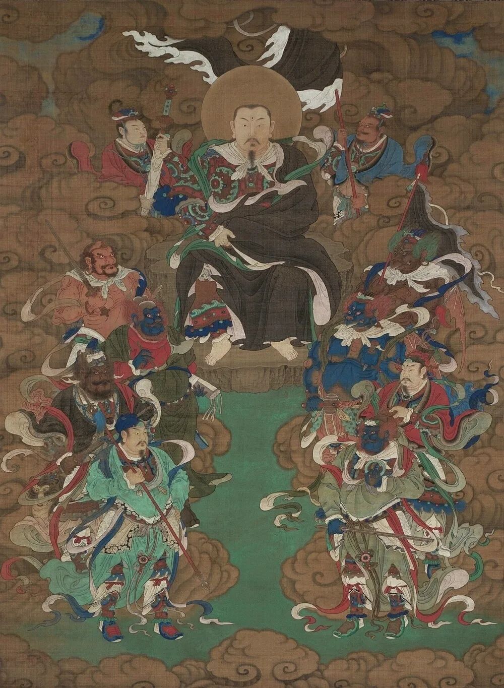 据《雷霆玉经》记载,雷声普化天尊是南极长生大帝的化身,掌管神霄玉府,下设“三省九司、三十六内院中司、东西华台、玄馆妙阁、四府六院及诸各司,各分曹局”。九天雷公将军、八方云雷将军、五方蛮雷使者、雷部总兵使者、三十六雷天将,为其辅佐之神、号令之神。