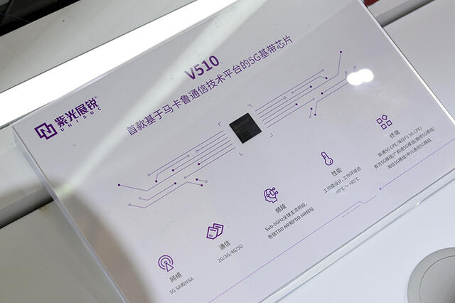 V510是展锐首颗基于马卡鲁技术平台的5G基带芯片,采用台积电12nm制程工艺,实现2G/3G/4G/5G(6Ghz以下)多种通讯模式,支持SA、NSA组网,在展台联通5G CPE移动Wi-Fi路由器正是搭载了该芯片。