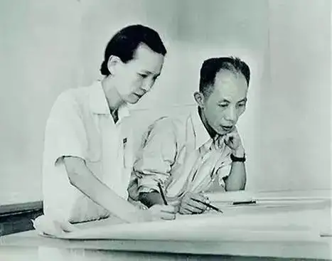 ▲ 林徽因和梁思成商讨设计国徽