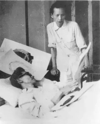 1950年,带病工作的林徽因(左)