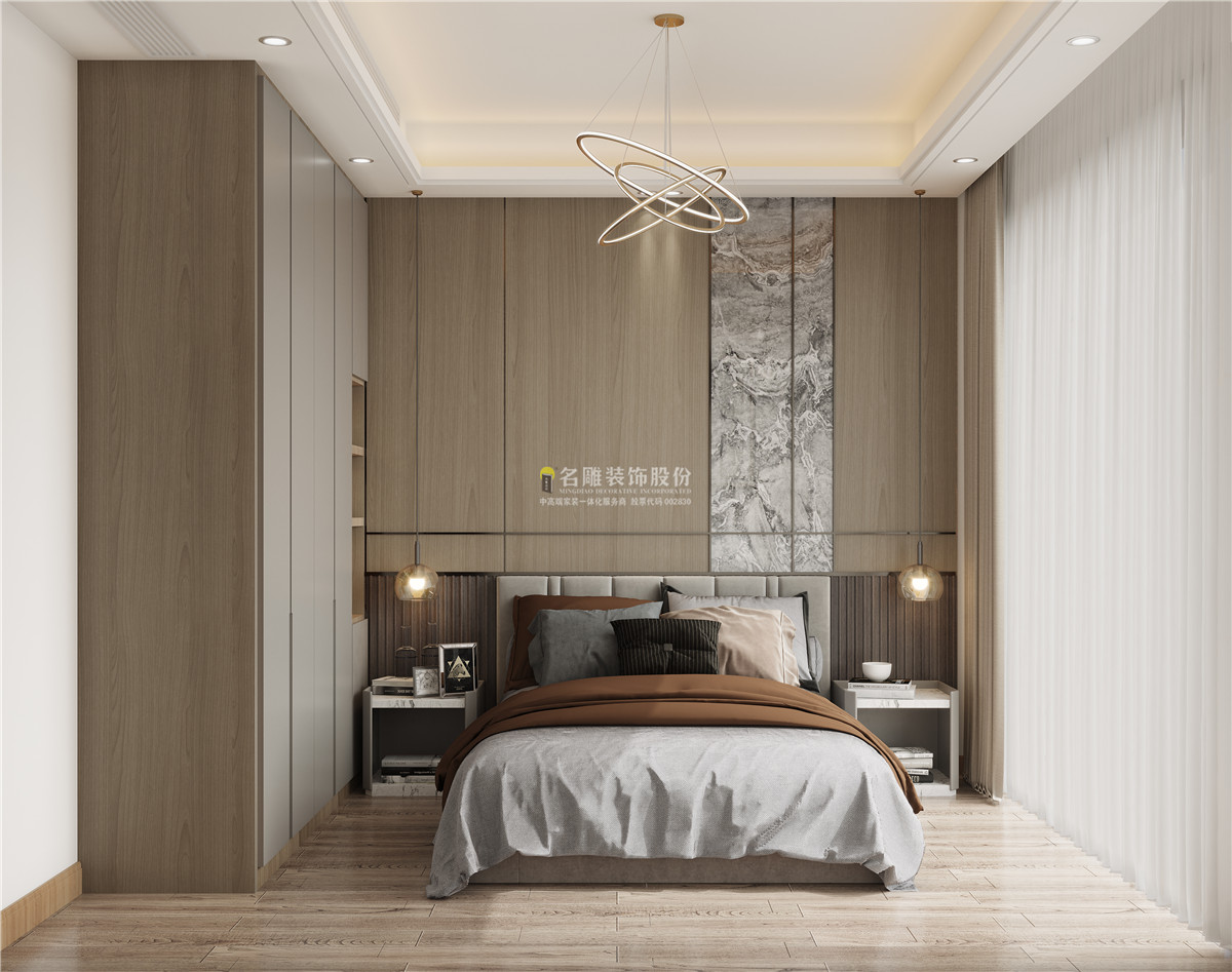 卧室的原木色搭配上淡雅的绿,整个空间的色彩单一不浮夸,寥寥无几的软装衍生出不受拘束的宽敞,各位业主,你们会喜欢这样装修的现代风格吗?