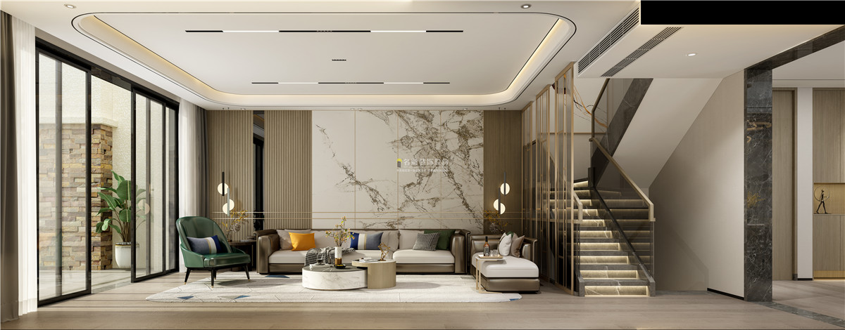 本次案例是恒大棕榈岛的一栋300m²别墅,原户型五房两厅三卫,结合业主的居住需求改成3+1住房结构, 保留原始的通透性,更加实用地将空间合理利用,还原了现代风格的明快、温馨。