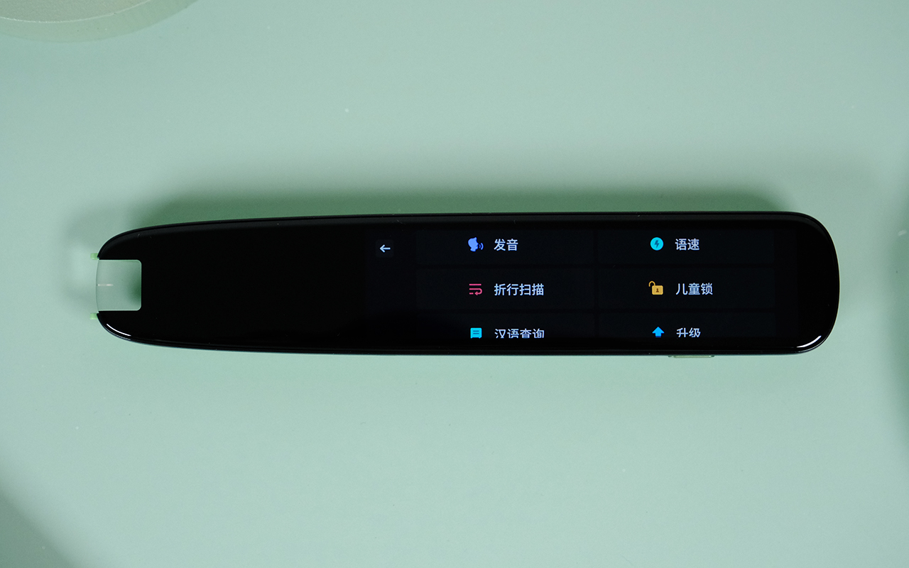 在设置中,除了提供了显示、WiFi、音量、OTA等这些基础的系统功能设置,还集成了儿童锁、发音、语速、折行扫描、汉语查询等特色功能设置。这里有两项比较重要的功能,分别是折行扫描和儿童锁,我们详细介绍一下。