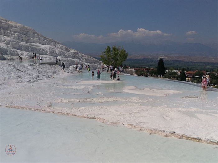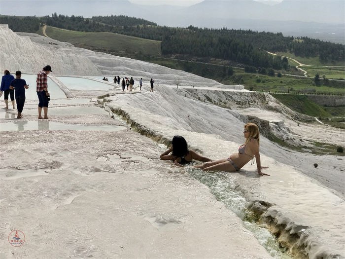 其实,早在2千年前的希腊时代起这里就是温泉疗养胜地,如今更是远近驰名,成为土耳其最重要的观光景点之一。虽然之前地震毁灭了古城,但晶莹如雪的石灰石依旧如故,这让我们这些后人可以对那些久远的历史一窥管豹;脱下鞋子,和两千多年前的人们在同样的地方濯足沐浴,同样为眼前的奇异美景感慨喟叹、惊奇无比。