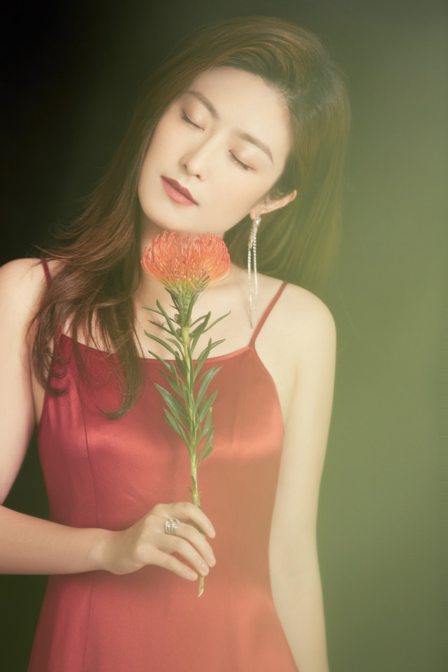 红色穿搭向来挑人,徐百慧此次大胆尝试效果惊艳,高贵动人,充分彰显自信优雅。丝绸质感的红裙衬托高贵端庄气质,韵味十足,好身材完美展现。一头柔顺的大波浪长发自然披散,尽显温柔。发间闪亮流苏耳饰直垂美肩,勾勒出线条漂亮的天鹅颈和直角肩,形状姣好的锁骨在秀发和花束遮挡间若隐若现,看起来清新美好。