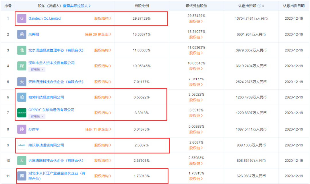 从股权结构来看,联发科的子公司Gaintech持有公司29.87%的股份,是公司的第一大股东,此外华为的哈勃、OPPO、VIVO、小米也纷纷入股,分别持有3.57%、3.39%、2.61%、1.74%的股份。