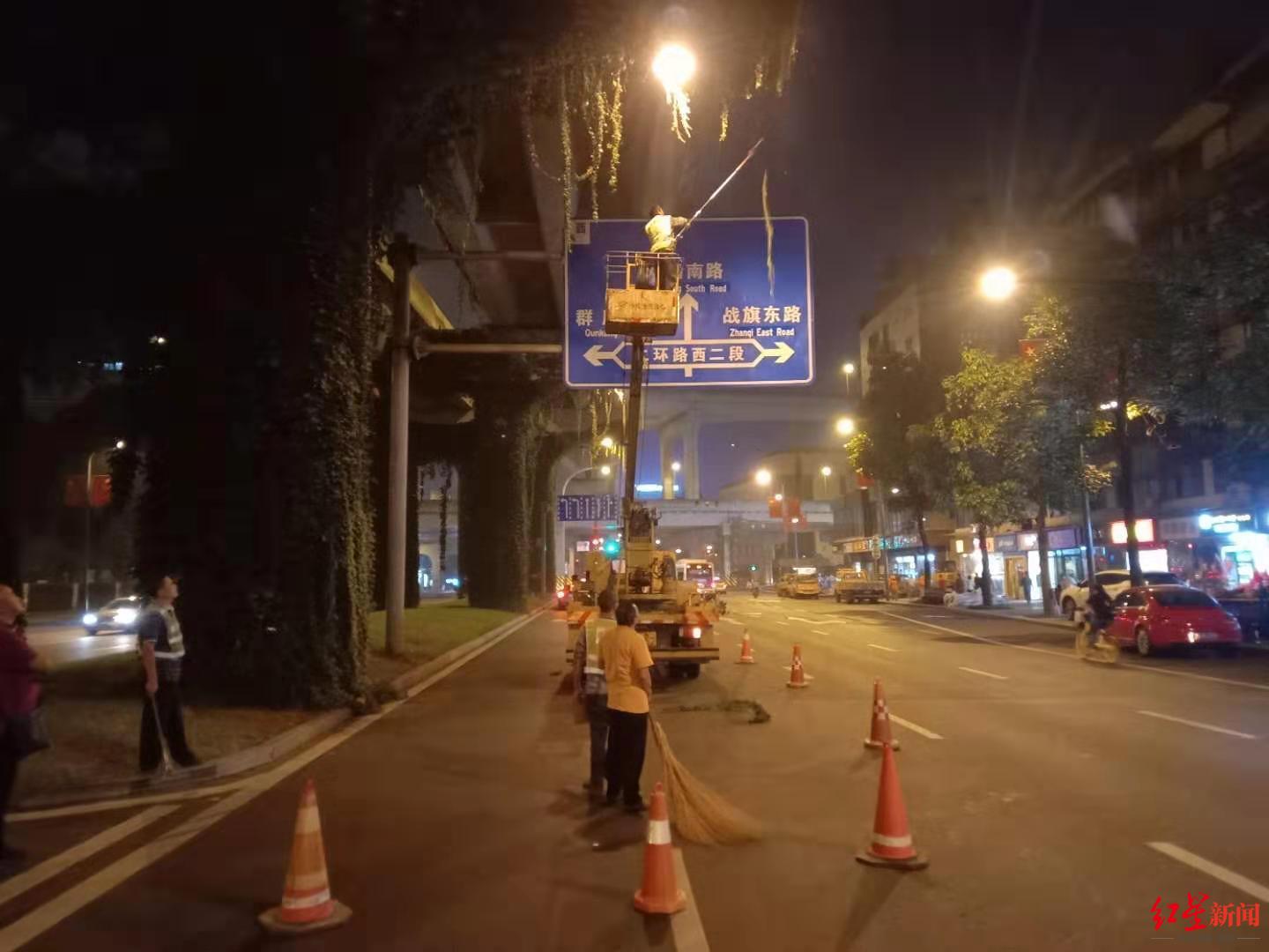 这段时间,工作到凌晨两三点,对于管护工作人员来说算是常态。“汛期雨多风大,行车道上方有垂挂的枝条存在安全隐患,我们也在加紧处理。”该负责人表示,凌晨一两点的时候,二环路依然不时有车辆通过。与旁边快速驶过,瞬间消失在视野中车辆相比,桥下阴影中缓缓上升的作业机械,如同爬山虎一样。“二环高架下成片成片爬山虎是日积月累慢慢形成的,需要持续不断地补植补栽,是一个往复不断的过程。”该负责人表示,夏天听到大家说爬山虎漂亮、看着舒服的时候,就会觉得修剪时在半空中的等待都是值得的。