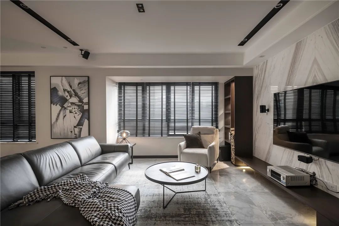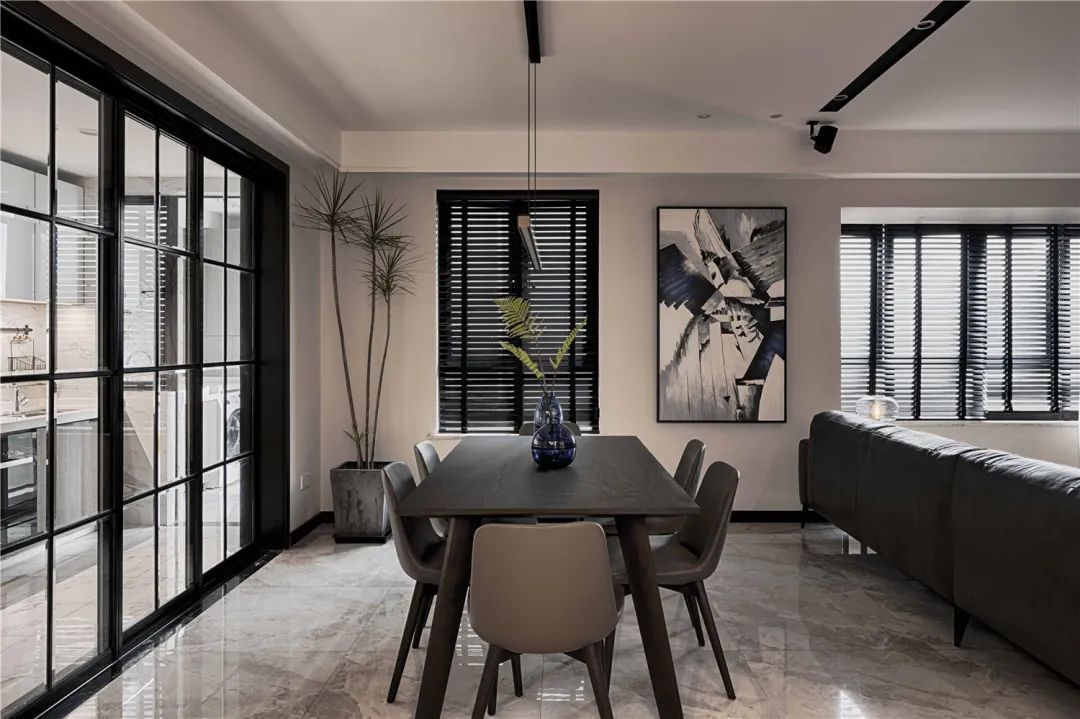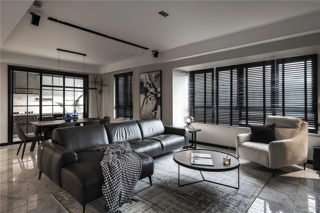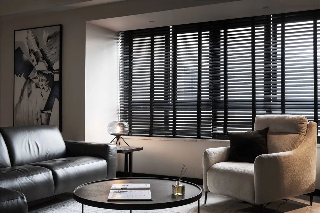 ▲窗户都装上黑色的百叶帘,让客厅显得明亮的同时,又不失端庄高级的质感。