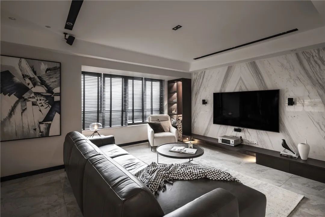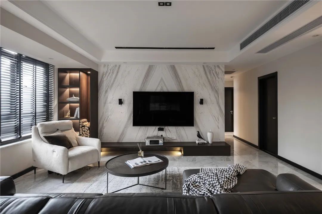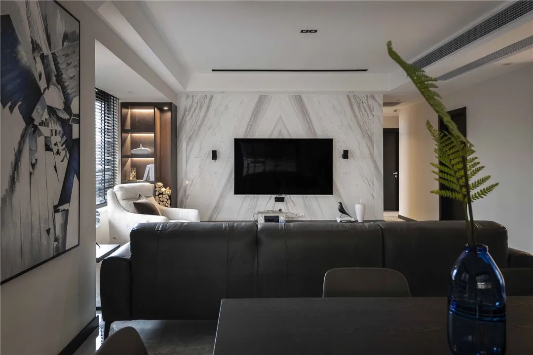 ▲客厅以现代风格基调,黑白配的色调设计,营造出一种舒适优雅的居住氛围。