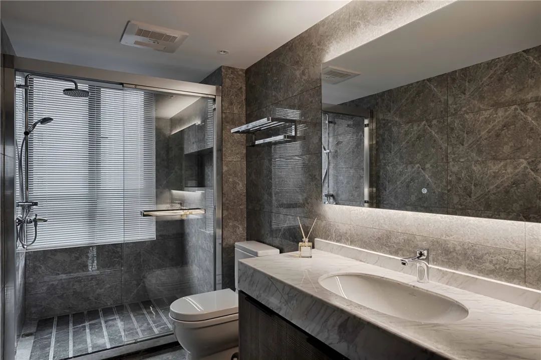 ▲另一个卫生间的色调与风格保持一致,窗户装上百叶帘,整个空间显得格外的现代优雅而大方。