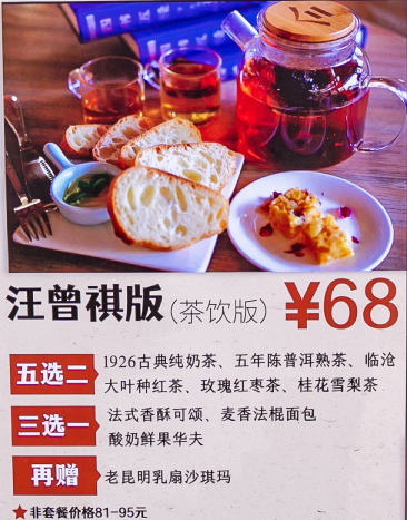 这里仿佛和西南联大的时空连接,以前林徽因、汪曾祺等西南联大的学子时常造访,现在,花上68元你就可以来一份汪曾祺或者钱穆版的西南联大下午茶。