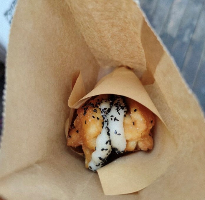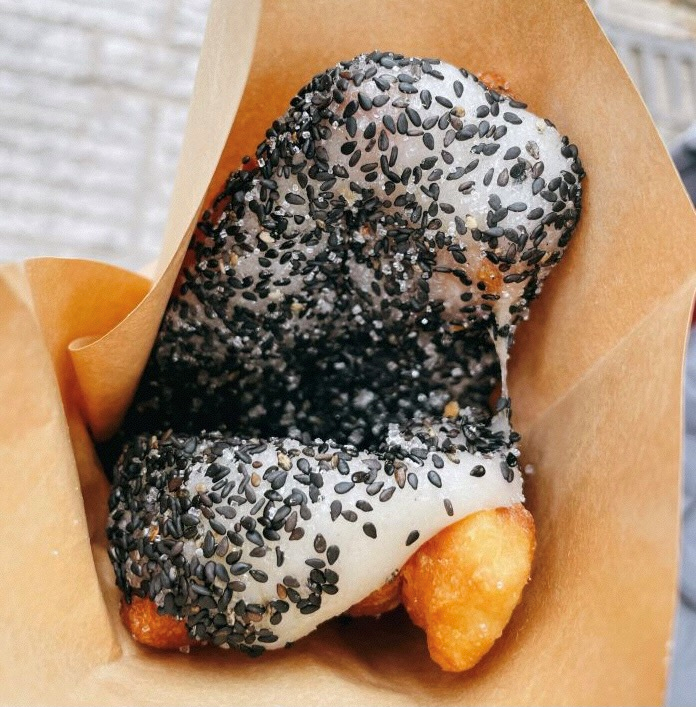 网红店也在老街落户,经典搭配黑芝麻原味款,份量多,黑芝麻巨香,麻糍软糯,两者的结合有种破次元壁的体验,简单来说就是外酥里嫩。