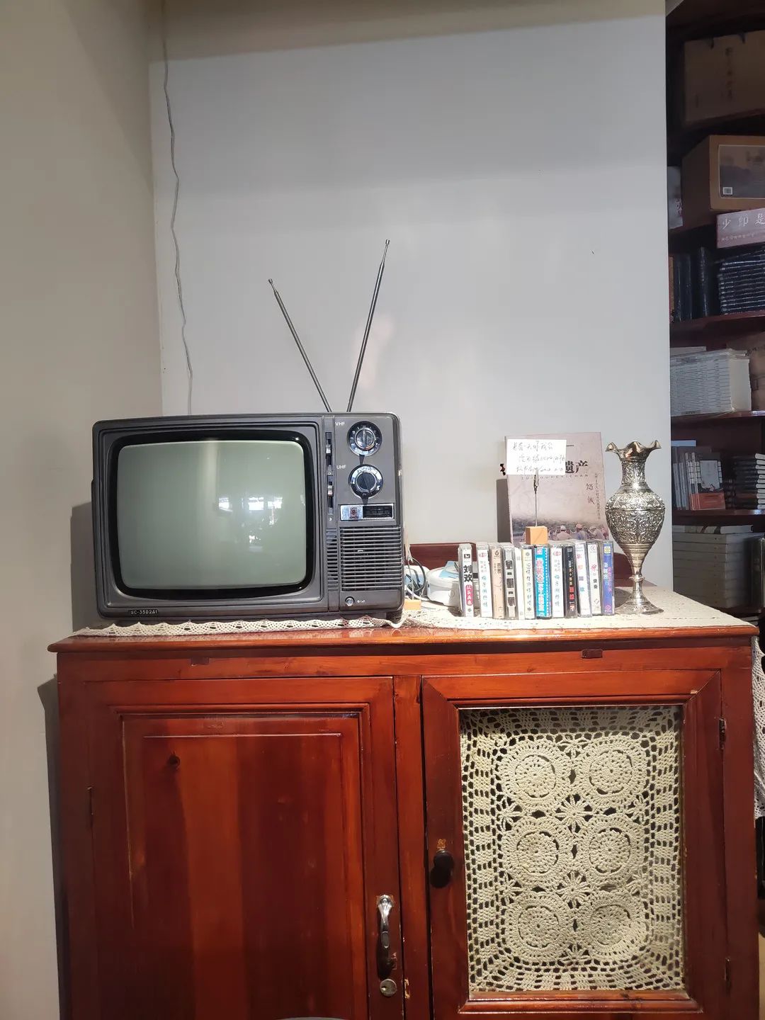 书店虽然在热闹的商业街上,但从进门开始就透着古香古色的调调,一楼的陈设很有年代感,老式的打字机,黑白的电视机,这些古董摆在这里并不违和。