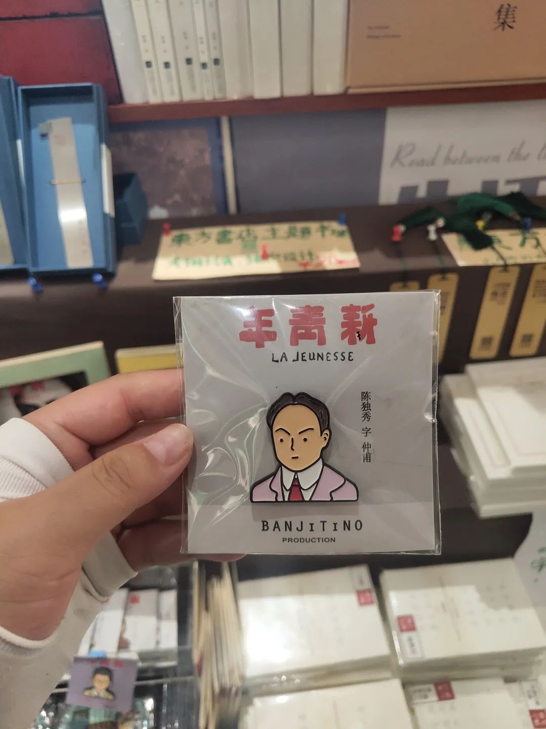 东方书店的文创周边也很有特色,简约大方的帆布包、可爱的书签冰箱贴和胸针。