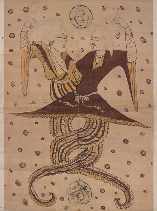 唐人伏羲女娲像立幅 唐(公元618年—907年) 新疆维吾尔自治区吐鲁番地区采集 中国国家博物馆藏