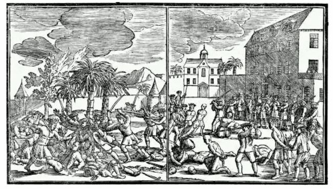 在不实的谣言下,西班牙人把这次考察矿藏的人,当成了明军的“先遣队”,而那些华人则成了明军的内应。随即,西班牙军队开始对华人展开血腥清洗。