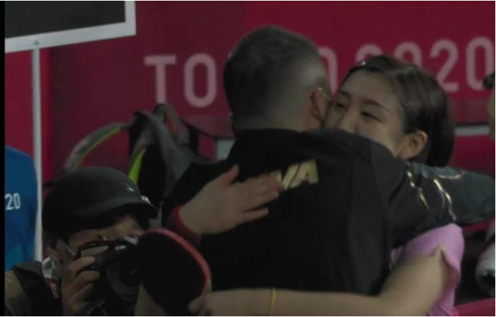 夺冠的那一刻,陈梦拥抱主管教练马琳,分享拿到金牌的喜悦,作为女队两位奥运选手的主管教练,他身上承担的很大的压力,在之前的混双决赛,马琳担任场外指导,许昕/刘诗雯输给水谷隼/伊藤美诚丢掉金牌,赛后他受到很多的质疑,现在终于得到宣泄,弟子真的争气。