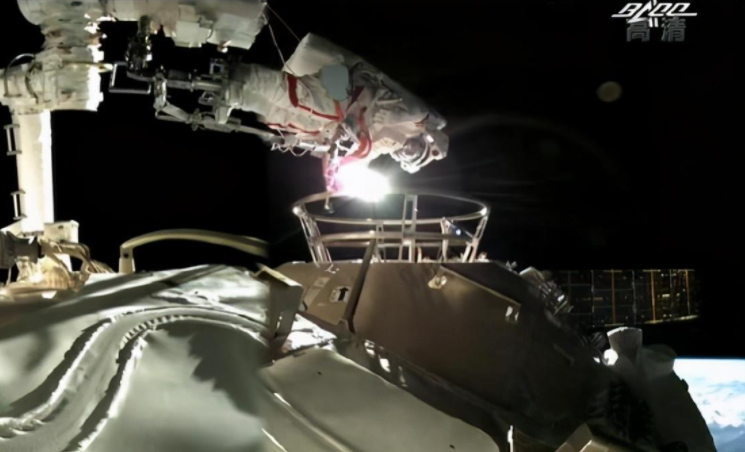 图为中国空间站舱外施工