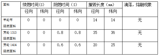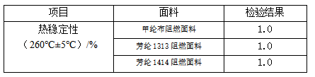 从表2可以看出,三种阻燃面料的热稳定性能指标都达到了260℃±5℃的高温下形变率≤10的指标。表明三种阻燃面料都具有优秀的抗形变能力。