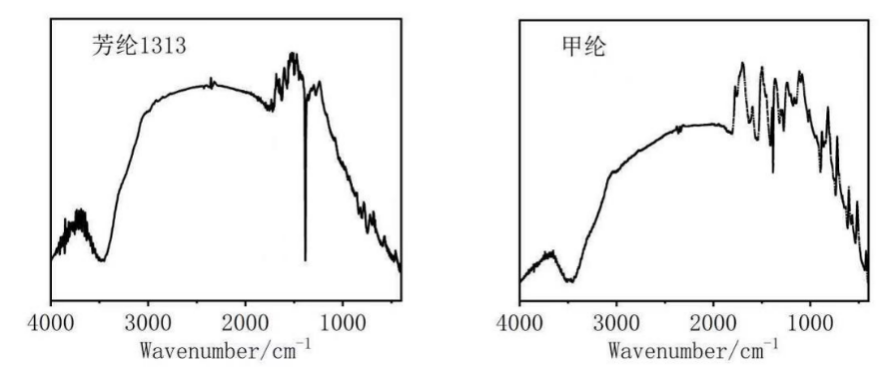 通过红外光谱(图4)验证了甲纶布和芳纶1313的分子结构,其中在芳纶1313和甲纶的红外光谱中,1400-1420 cm-1处均出现一个尖锐的吸收峰,这归属于酰胺结构C-N的伸缩振动[15];甲纶布分子的红外光谱1630-1670 cm-1处有两个中等强度的峰,这归属于叔酰胺的C=O伸缩振动。这说明甲纶布在芳纶纤维的基础上成功掺杂了聚酰亚胺纤维。
