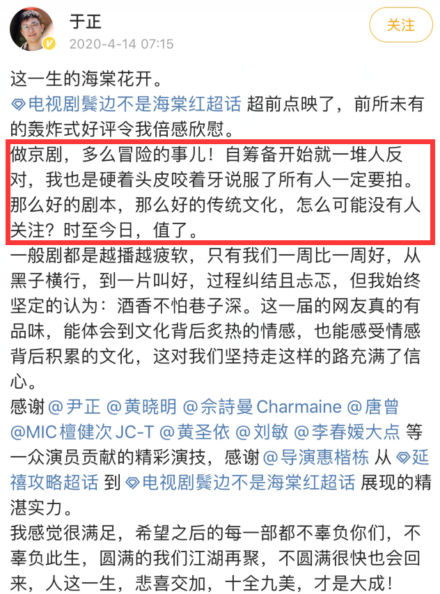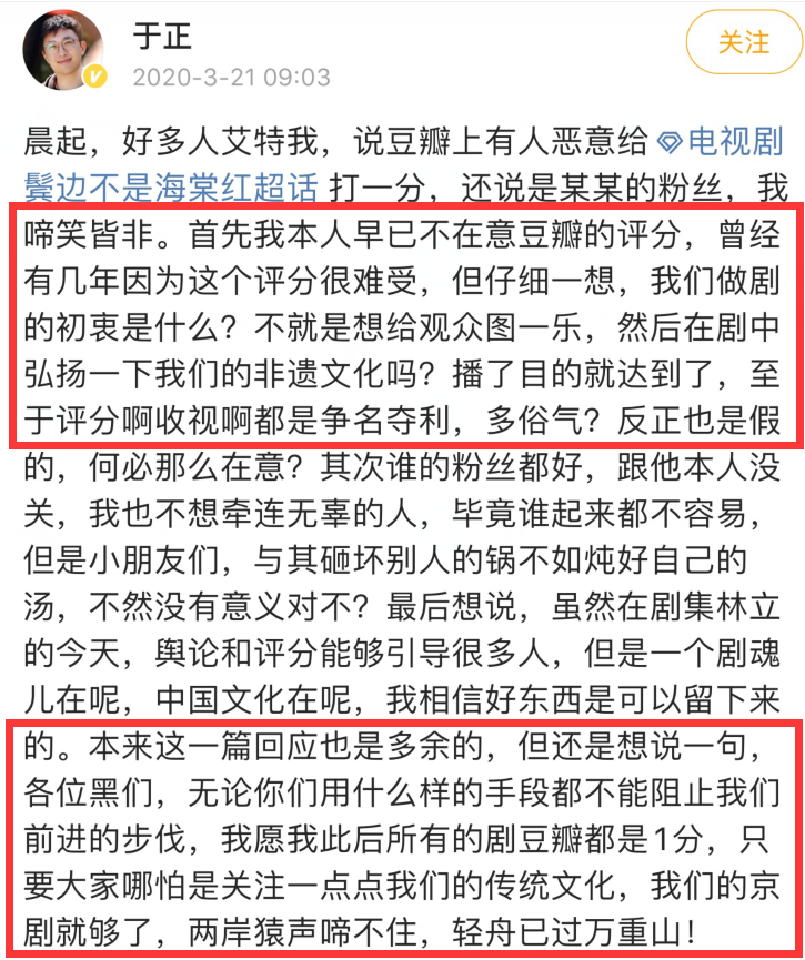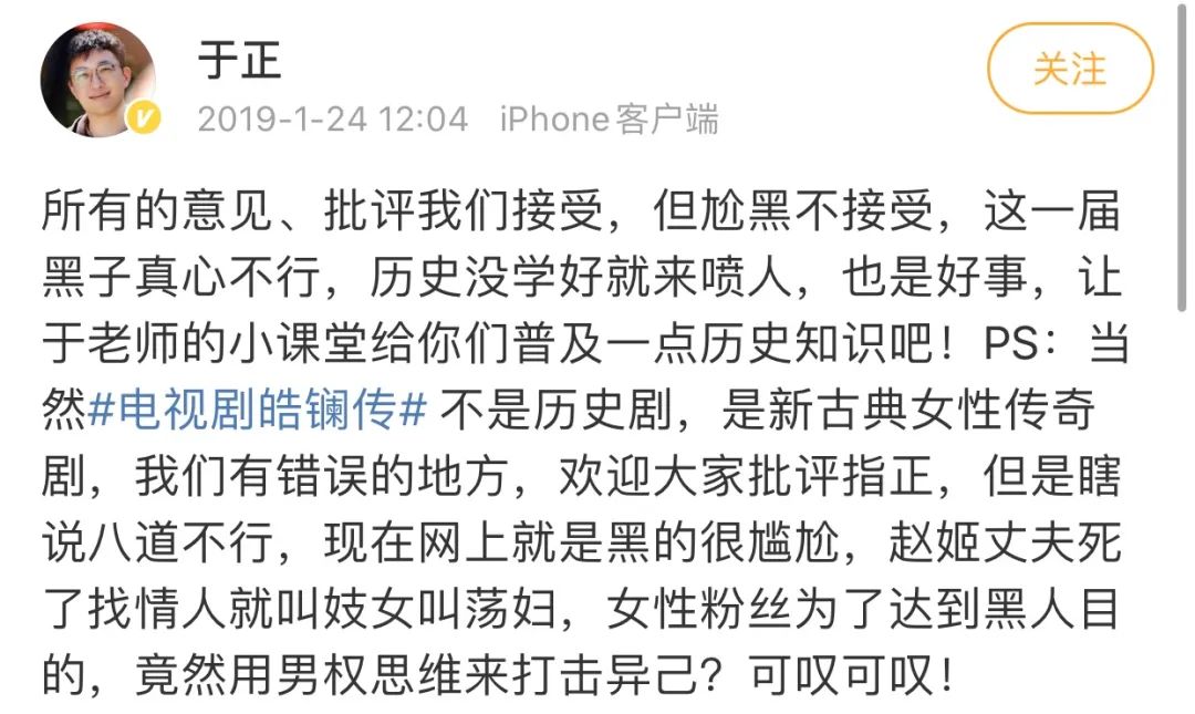 谁要跟于正过不去,那就是跟这剧过不去,那就是跟传统文化过不去。