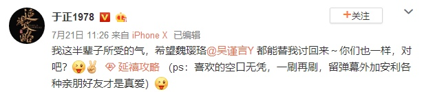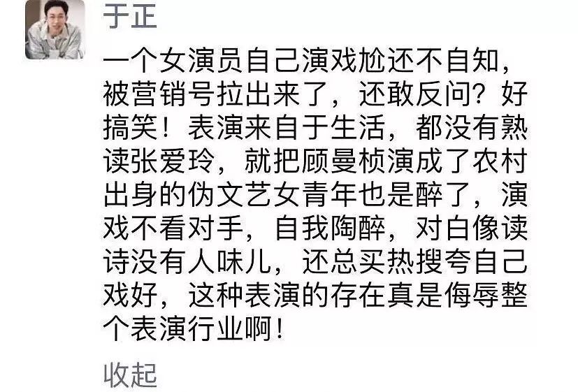 正值《大约在冬季》上映,他先发微博内涵马思纯演技太差(此时依然不忘带上“优酷演技派tag”),后来又发朋友圈补刀;