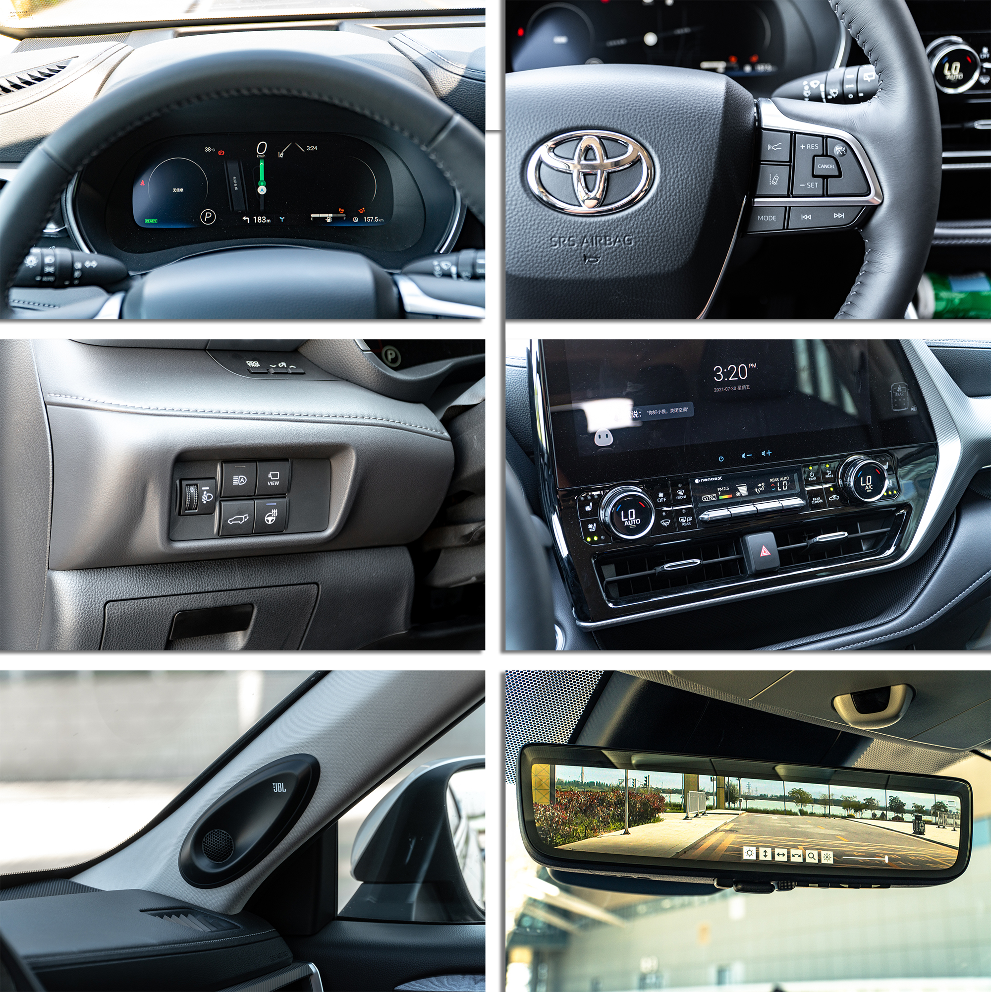 配置方面,全新汉兰达也毫不含糊。12.3英寸全液晶仪表盘、HUD抬头显示、最新的TSS智行安全系统、方向盘加热、电动尾门、座椅记忆、座椅加热/通风,带空气净化装置的分区自动空调、流媒体后视镜、JBL高档音响,在这台顶配汉兰达上都有搭载,即便是最挑剔的配置控也能满足。